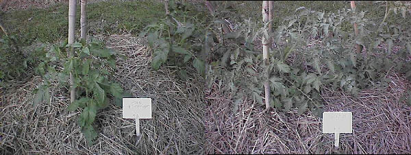 ANd for a parting picture, here is a picture of a "pink brandywine" with "potato leaf" type leaves, and the "german gold", with regular tomato type leaves... sorta interesting.