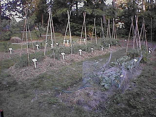 What do you think? I am actually starting to like the bamboo. It is useful for some things, (see picture) and not as much of a pain as I thought when I first moved in here. and I found out that if you thin it out, the next years "crop" comes up thicker and taller. this year I Have some stalks that are ~ 3 inches in diameter. Actually, I have two different types of bamboo growing, one that grows tall with the stalks on top, (I like those) and one that is skinnier and grows with thick stalks from the ground up. (I will grow to like those as soon as I control them better.)